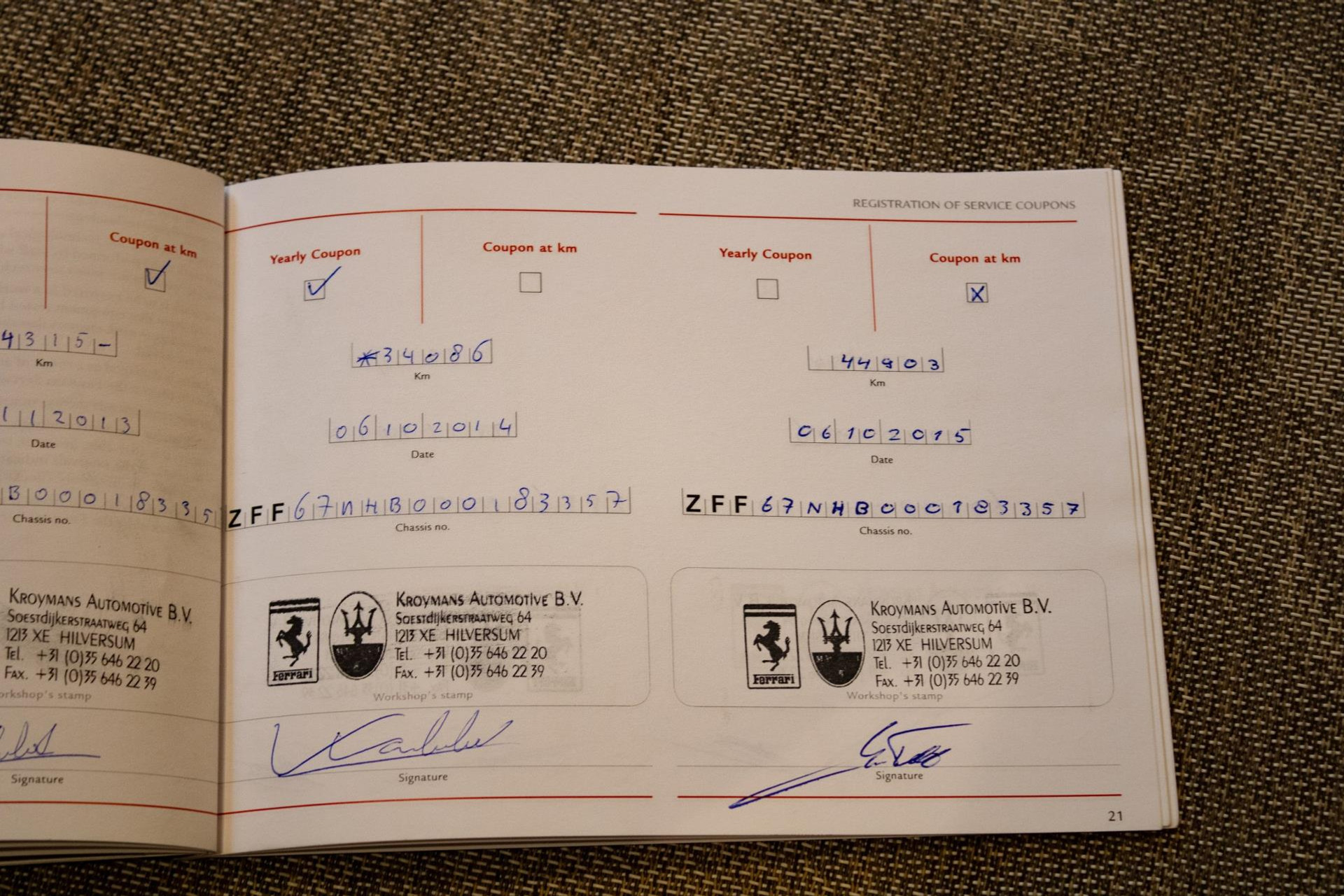 06-10-2015 44903 km year service Kroymans Automotive B.V. Ferrari dealer