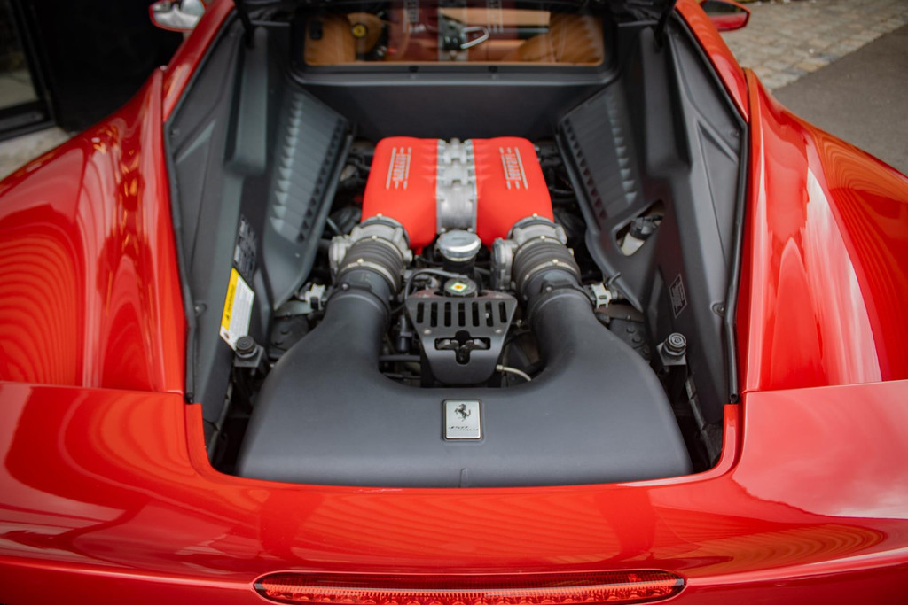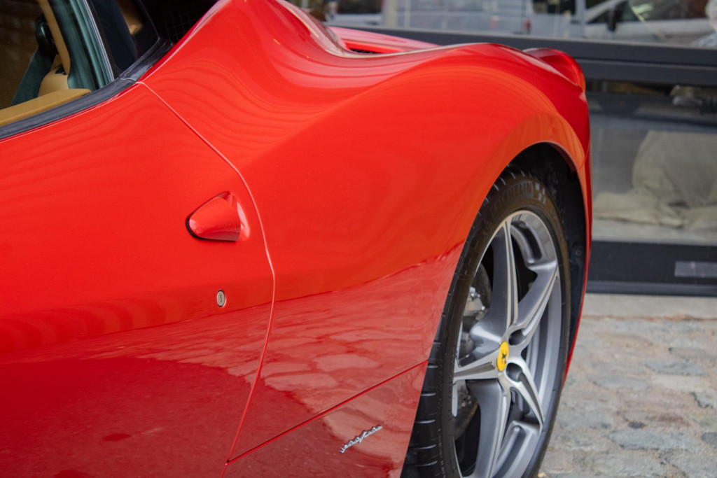 This Ferrari 458 Italia is a rare and stunning example, finished in the exclusive Tailor Made colour Rosso Fuoco. This unique triple-layer pearlescent paint combines a metallic pink base with a deep red candy topcoat, creating an intense, fiery glow. The light dances beautifully across the bodywork, subtly highlighting the car’s elegant lines and athletic character. Iconic Scuderia Ferrari shields adorn the front fenders, while aluminium brake calipers and the Adaptive Frontlight System (AFS) enhance both aesthetics and functionality. For added practicality and comfort, the car is equipped with a front suspension lift and a thermal windscreen.