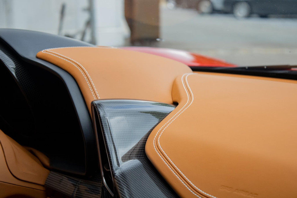 Voor wie houdt van sportieve accenten, is deze 458 voorzien van een uitgebreid carbon interieurpakket. Dit omvat onder andere een carbon stuurwiel met geïntegreerde LED-shiftlights, carbon inlegstukken op het dashboard, een carbon middenconsole, carbon instaplijsten en carbon portierpanelen. Deze elementen versterken het race-DNA van de auto en geven het interieur een moderne, hoogwaardige uitstraling.