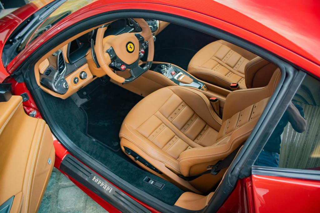 For those who appreciate sporty details, this 458 is equipped with an extensive carbon interior package, including a carbon steering wheel with integrated LED shift lights, carbon dashboard inserts, centre console, door panels, and door sills. These components underline the car’s racing DNA and give the cabin a sophisticated, performance-oriented appearance.