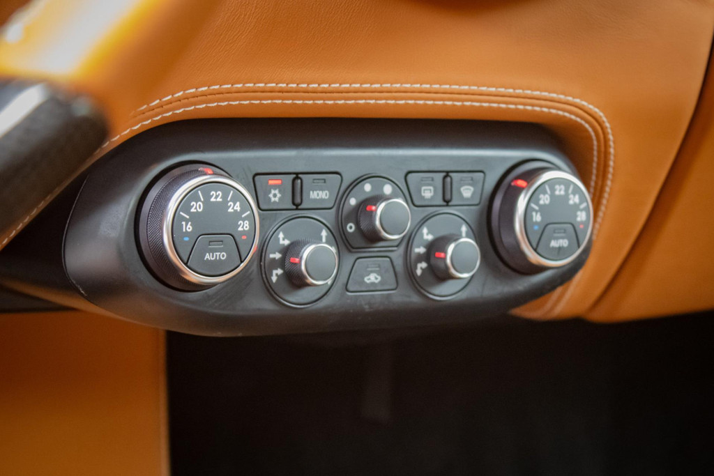 Technologically, the Ferrari is well-equipped with a navigation and audio system with Bluetooth, a Premium Hi-Fi sound system, rear-view camera, and front and rear parking sensors for comfort and safety. The HELE system (High Emotion Low Emission) improves efficiency and reduces emissions without compromising performance.