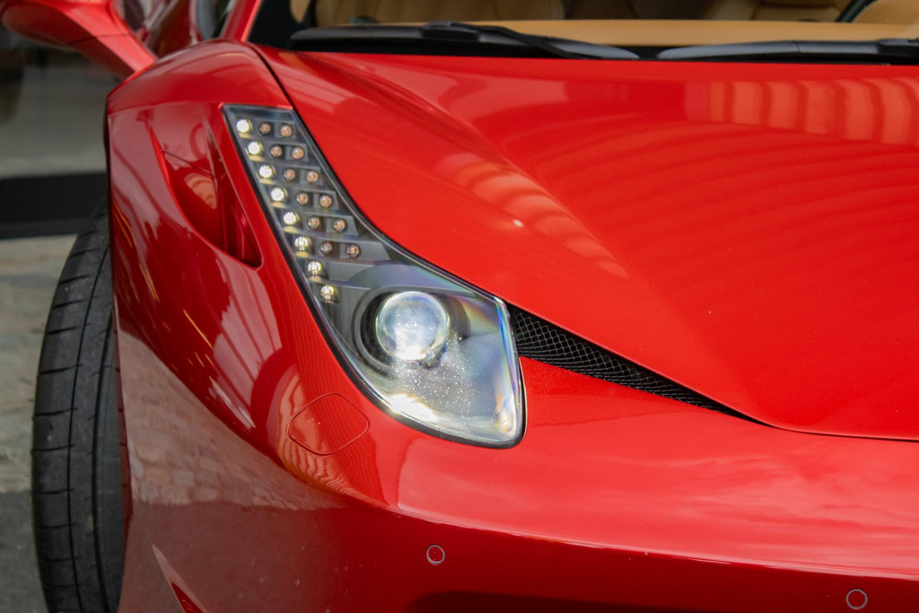 This Ferrari 458 Italia is a rare and stunning example, finished in the exclusive Tailor Made colour Rosso Fuoco. This unique triple-layer pearlescent paint combines a metallic pink base with a deep red candy topcoat, creating an intense, fiery glow. The light dances beautifully across the bodywork, subtly highlighting the car’s elegant lines and athletic character. Iconic Scuderia Ferrari shields adorn the front fenders, while aluminium brake calipers and the Adaptive Frontlight System (AFS) enhance both aesthetics and functionality. For added practicality and comfort, the car is equipped with a front suspension lift and a thermal windscreen.