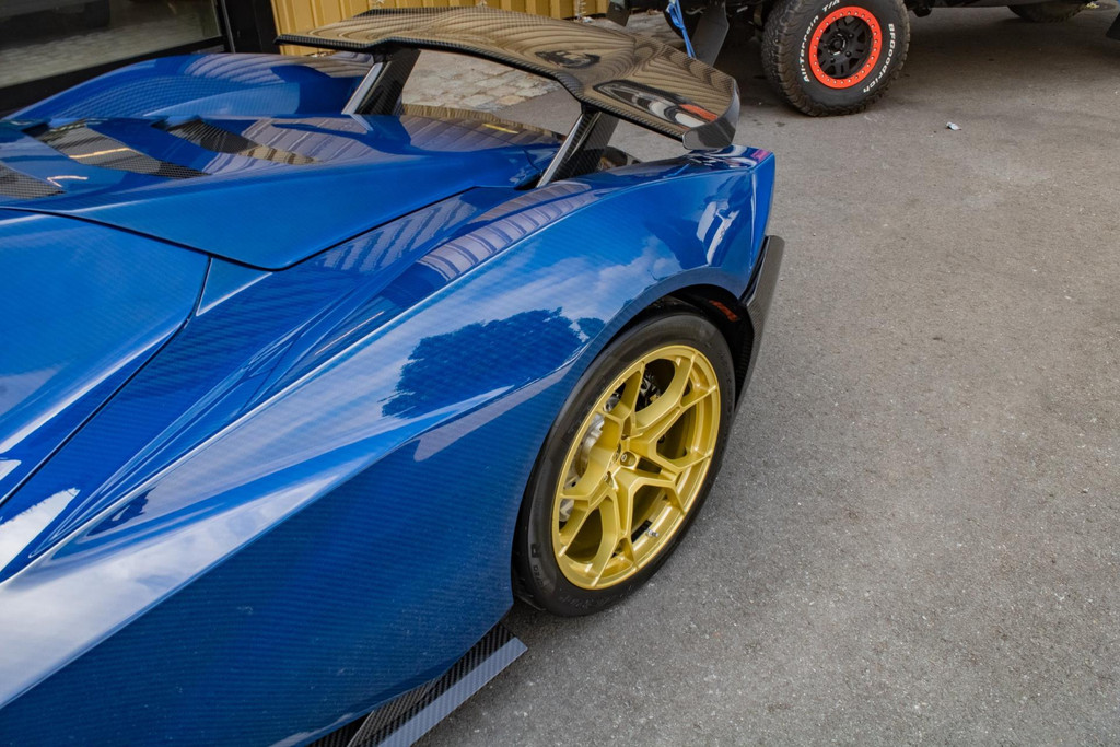 Een van de meest spectaculaire eigenschappen van deze auto is de manier waarop je instapt: de cockpit opent elektrisch als een straaljager canopy. Geen deuren, maar een volledige koepel die naar voren opent – een uniek en indrukwekkend detail dat direct laat zien dat deze auto niets met conventionele sportwagens te maken heeft.