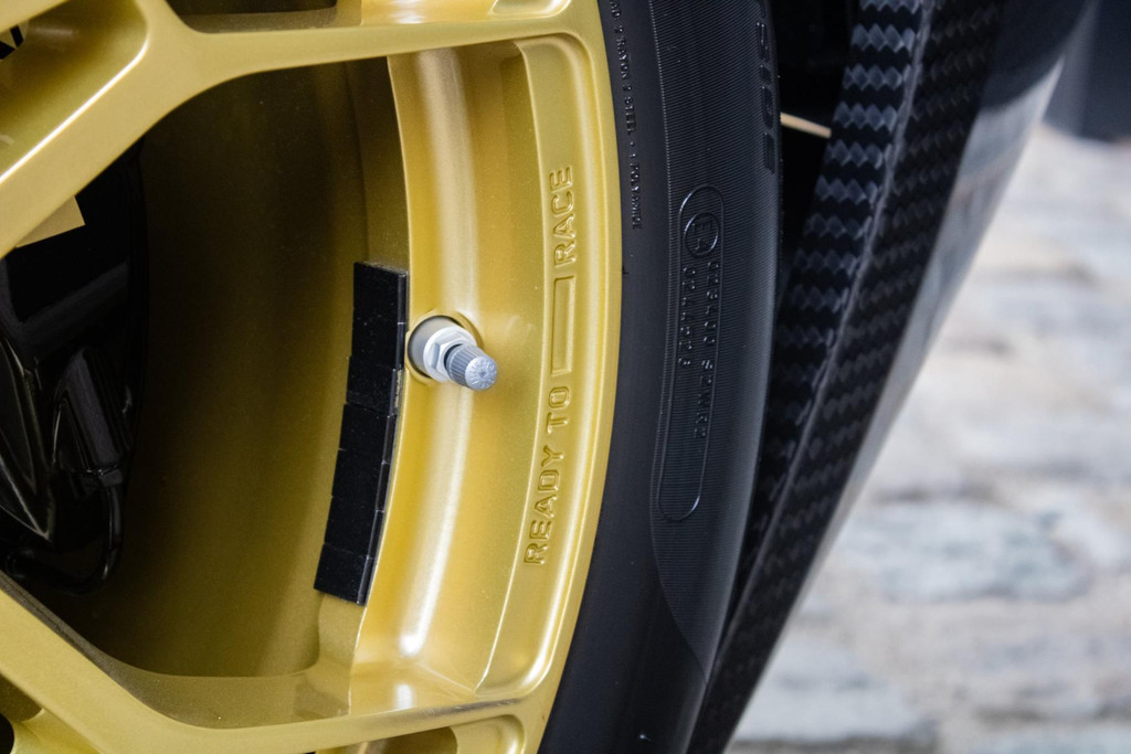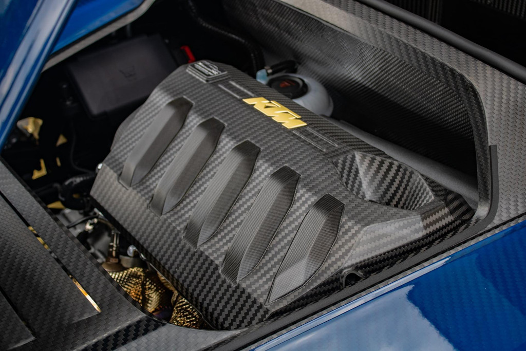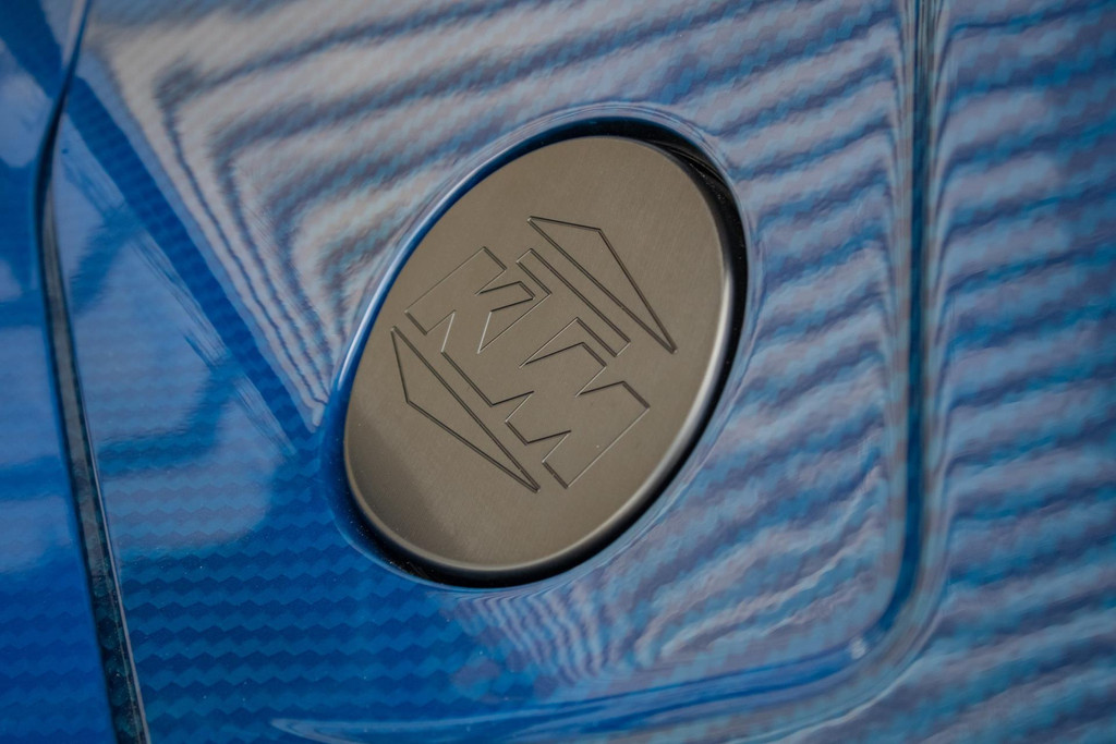 Dieses Exemplar hat nur 27 Testkilometer auf dem Kilometerzähler und ist in absolutem Neuzustand. Das Fahrzeug wurde auch im Detail mit exklusiven goldfarbenen Akzenten personalisiert: So sind die Felgen in Gold Gloss lackiert, inklusive der KTM-Logos auf den Radnabenabdeckungen. Die Bremssättel sind ebenfalls in RAL 9005 schwarz mit goldenen Logos ausgeführt. Darüber hinaus sind die Aufhängung, die Embleme (innen und außen), die Nähte der Sitze, die Abschleppöse und die Plakette „100 Limited Edition“ in Gold ausgeführt. Der GT-XR fährt auf Pirelli P ZERO TROFEORACE Semi-Slicks, die auf 19-Zoll-Reifen vorne und 20-Zoll-Reifen hinten montiert sind.