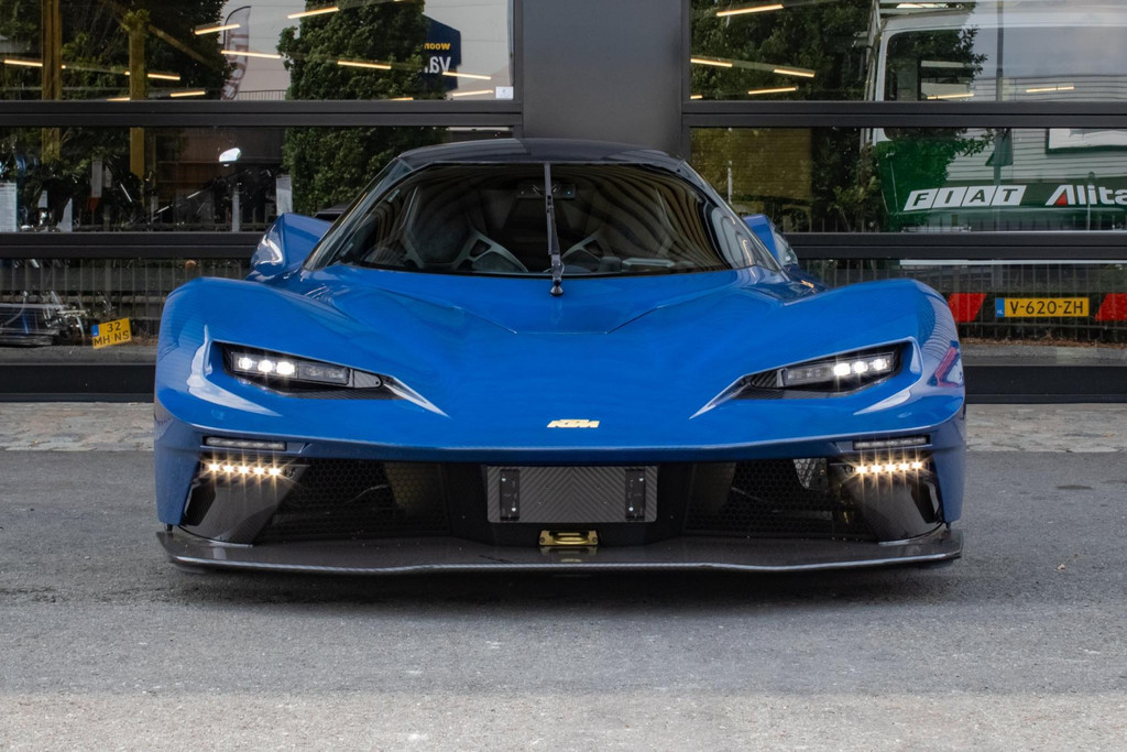 Een unieke en nieuwe KTM X-BOW GT-XR, nummer 47 van slechts 100 wereldwijd geproduceerde exemplaren. Deze straatlegale hypercar is uitgevoerd in een exclusieve, eenmalig geproduceerde lak genaamd Colored Carbon Spielberg Blue. De lak heeft een lichtdoorlaatbaarheid van 30,47%, waardoor de volledige carbon body zichtbaar blijft onder een diepe, metallic blauwe gloed. Deze lakoptie vertegenwoordigt een waarde van €35.000 en is slechts één keer toegepast – dit exemplaar is dus letterlijk uniek: een one-of-one.