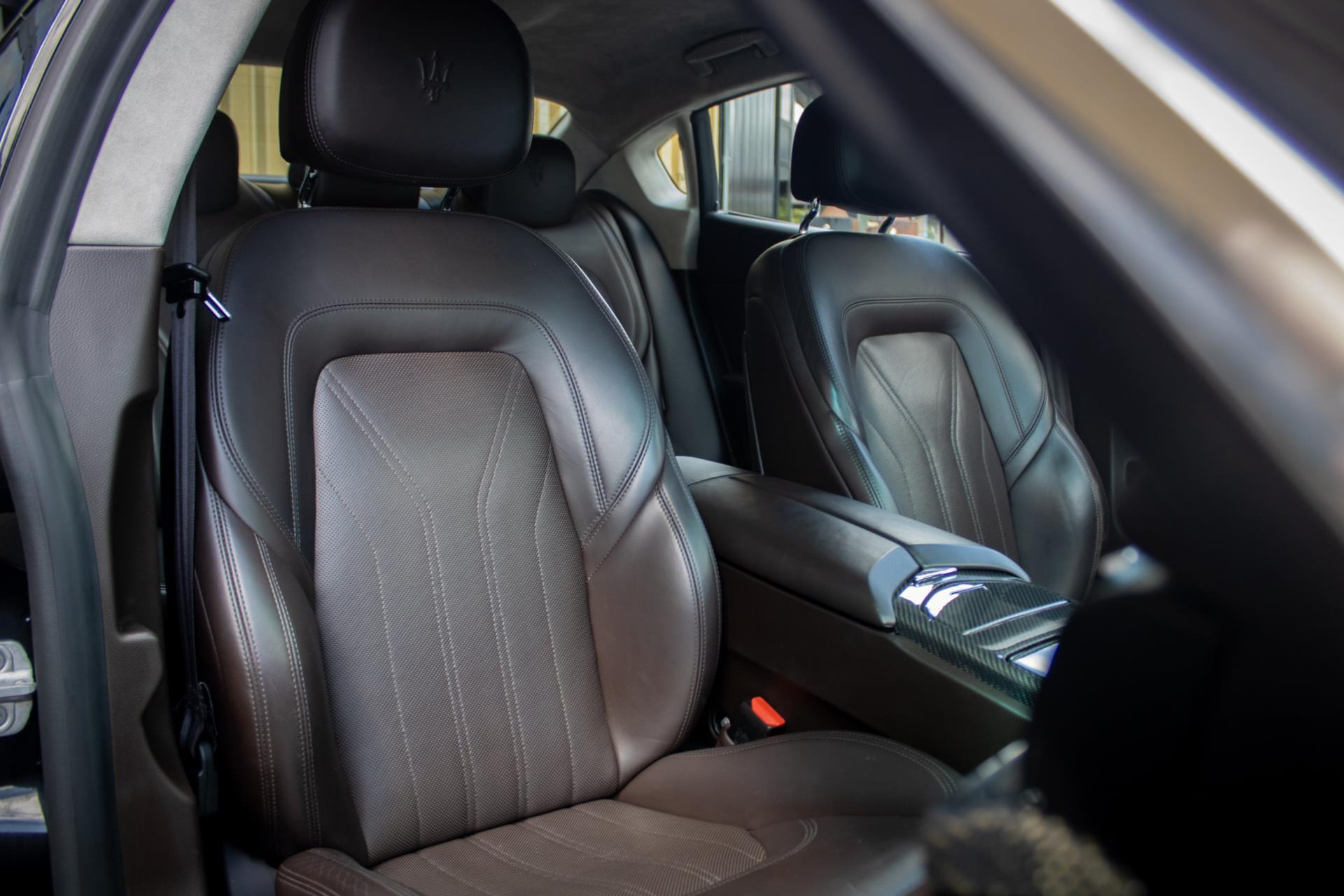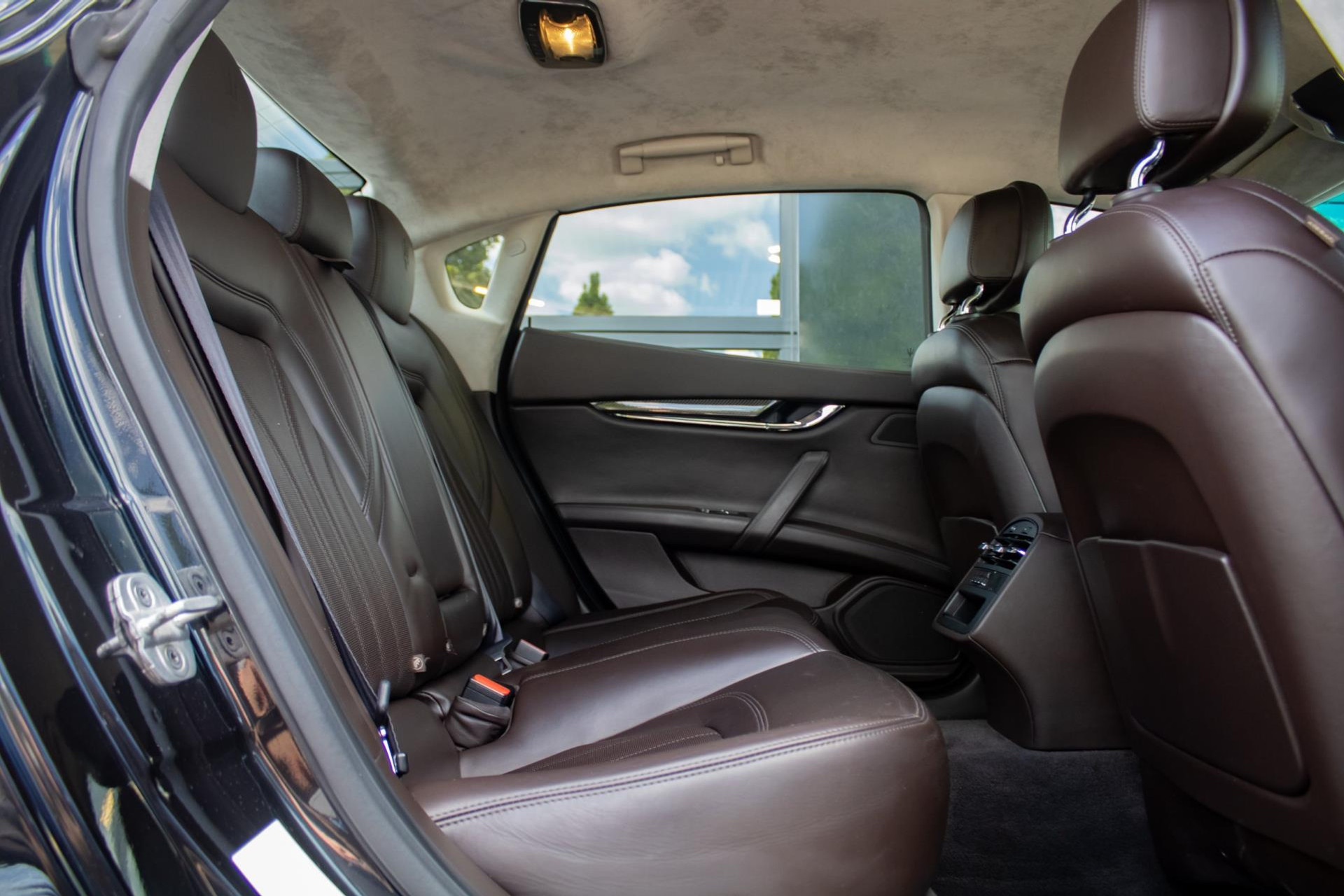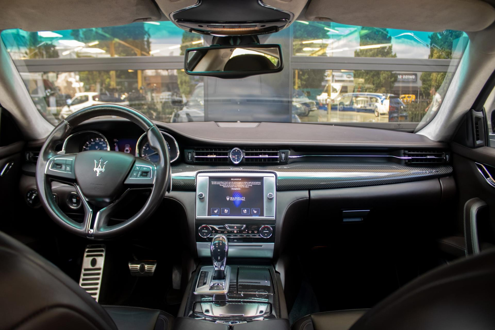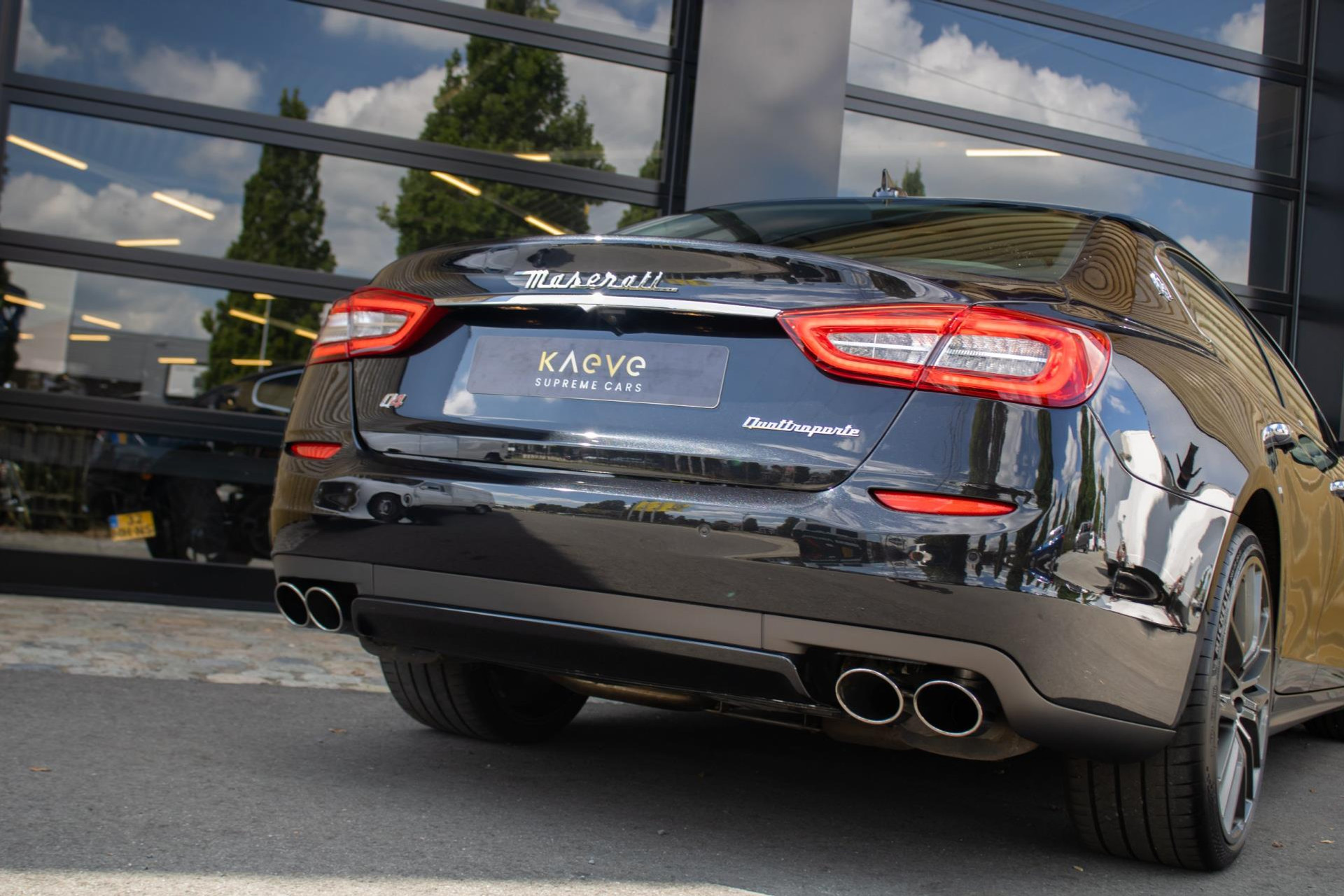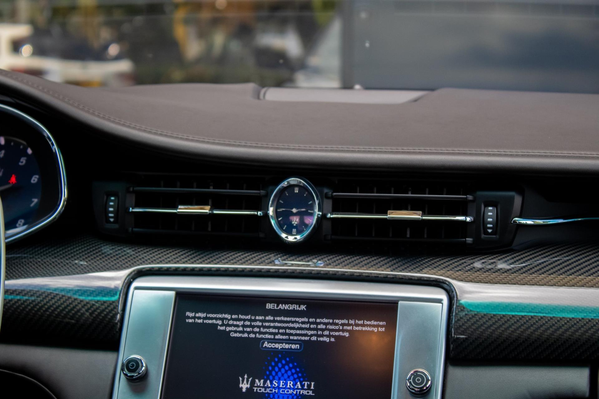 Het interieur biedt luxe en comfort met elektrisch verstelbare stoelen die zowel verwarmd als gekoeld kunnen worden, een vierzone automatische klimaatregeling, een premium audiosysteem, navigatie en diverse moderne comfortvoorzieningen zoals sleutelvrije toegang. Wat deze Quattroporte echt uniek maakt, is de sportstand waarin de kleppen van de originele uitlaat open gaan, waardoor een ongekend krachtig en diep motorgeluid vrijkomt dat de ervaring van rijden in deze Italiaanse sportlimousine onvergetelijk maakt.