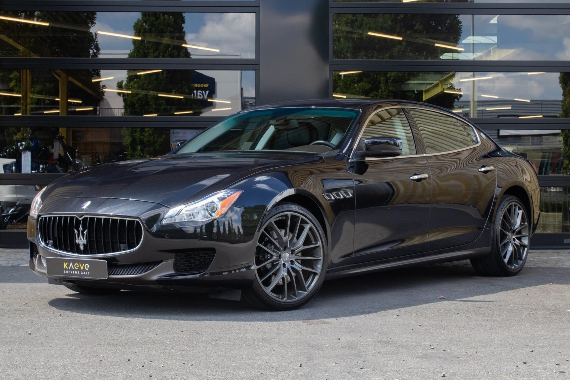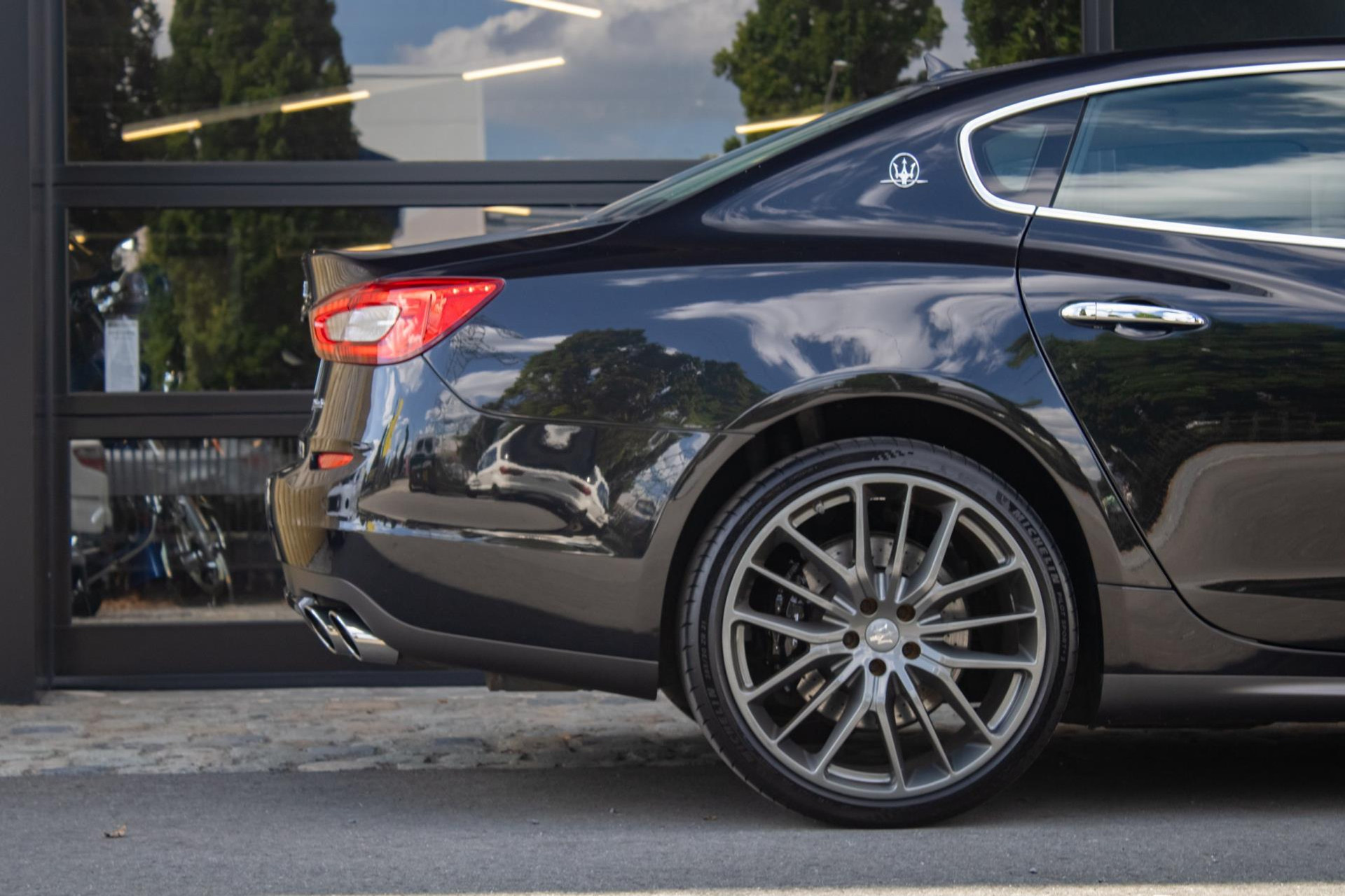 A stunning 2014 Maserati Quattroporte S Q4 with a mileage of 103,000 km. This luxury sports limousine is finished in the deep black metallic colour Nero Ribelle (Q815) and features a particularly beautiful interior with dark brown perforated leather, a beige/grey alcantara roof lining and full carbon trim in the interior. The car is equipped with a powerful 3.0-litre V6 Bi-Turbo engine of 410 hp, an 8-speed automatic transmission and the Q4 all-wheel drive system, ensuring excellent performance and grip in all conditions.