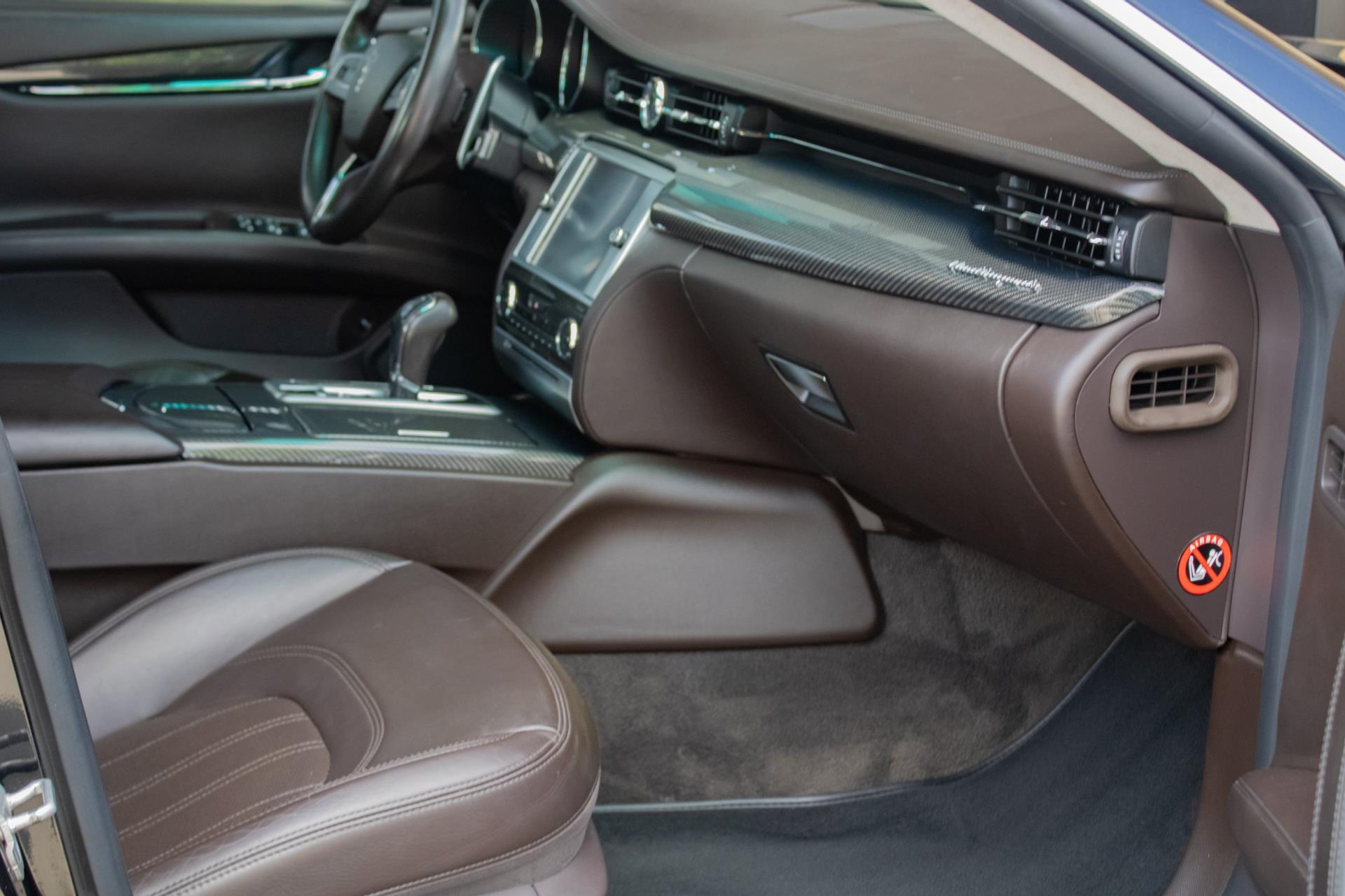 The interior offers luxury and comfort with electrically adjustable seats that can be both heated and cooled, four-zone automatic climate control, a premium audio system, navigation and various modern comfort features such as keyless entry. What makes this Quattroporte truly unique is the sport mode in which the valves of the original exhaust open, releasing an unprecedented powerful and deep engine sound that makes the experience of driving this Italian sports limousine unforgettable.