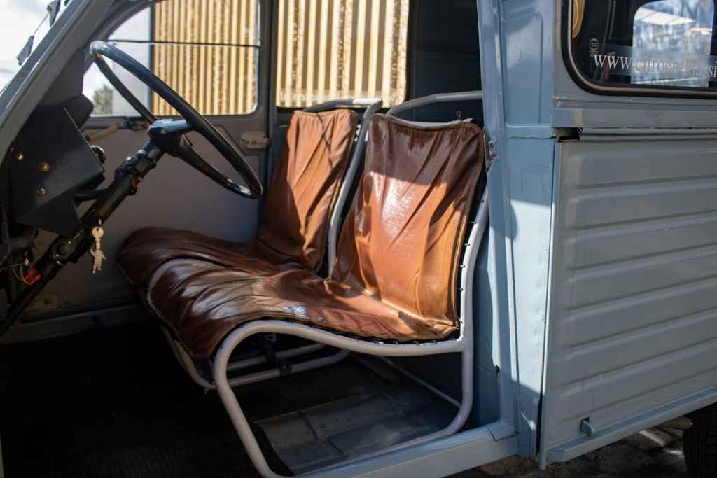 This 2CV began its life in Entraygues (Aveyron), South France, owned by local shopkeeper Jules Serieys, who used it daily to deliver gas bottles and carry a ladder on the roof rack to pick apples from his orchard. After his passing, the van was brought to the Netherlands by the current owner, who has cherished it for 26 years. Shortly after acquisition, it underwent a thorough restoration by the renowned Château Deux Chevaux in Beesd.