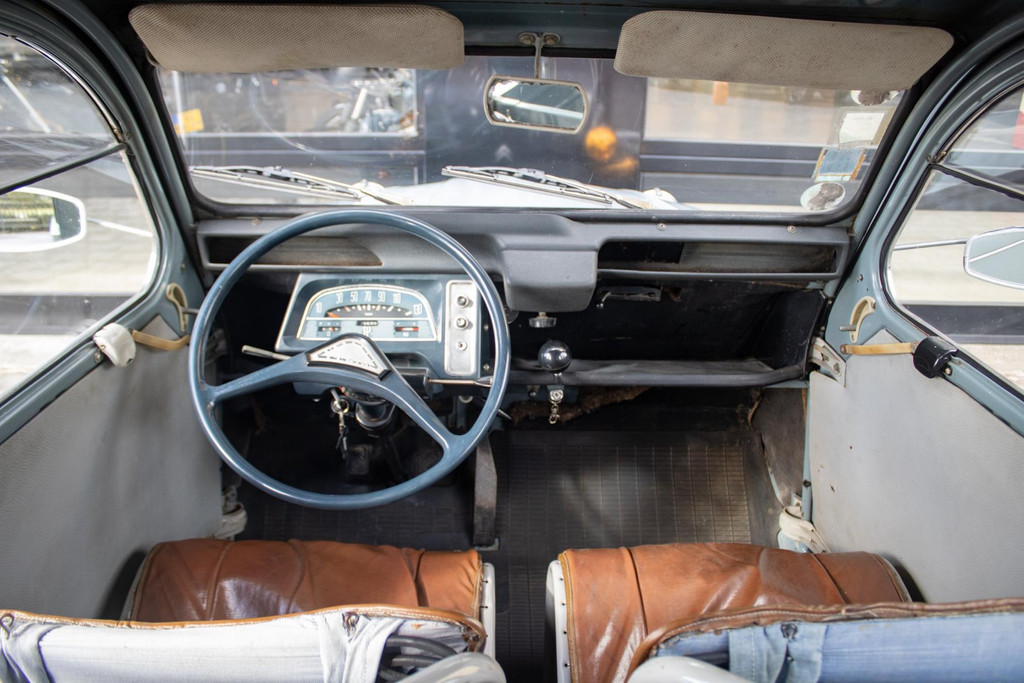 This 2CV began its life in Entraygues (Aveyron), South France, owned by local shopkeeper Jules Serieys, who used it daily to deliver gas bottles and carry a ladder on the roof rack to pick apples from his orchard. After his passing, the van was brought to the Netherlands by the current owner, who has cherished it for 26 years. Shortly after acquisition, it underwent a thorough restoration by the renowned Château Deux Chevaux in Beesd.