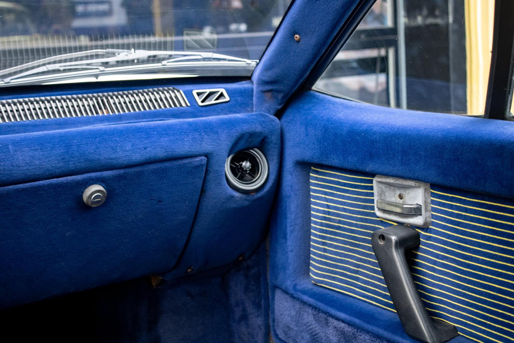 À son arrivée aux Pays-Bas, la carrosserie a été repeinte par un spécialiste des carrosseries en plastique, avec un résultat magnifique et durable. L'intérieur est toujours équipé de la sellerie d'origine, d'un design flamboyant jaune/bleu.