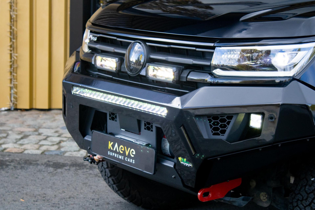 This Amarok is finished in black metallic with a half leather/Alcantara interior. Powered by the 3.0 TDI V6 with automatic transmission and 4Motion four-wheel drive. As the latest generation Amarok, it features modern equipment such as a large touchscreen infotainment system, digital instrument panel, 360° camera, keyless entry & start, adaptive cruise control, lane departure warning, electrically adjustable seats and LED headlights.