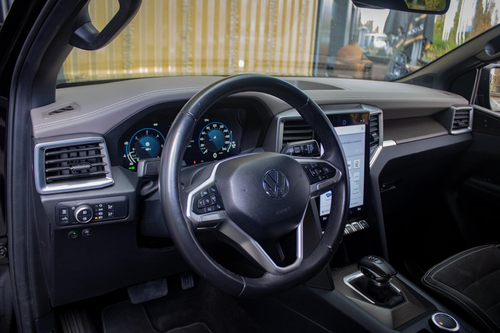 Deze Amarok is uitgevoerd in zwart metallic met half leder/Alcantara interieur. Aangedreven door de 3.0 TDI V6 met automatische transmissie en 4Motion vierwielaandrijving. Als nieuwste generatie Amarok beschikt hij over moderne uitrusting zoals een groot touchscreen infotainmentsysteem, digitaal instrumentenpaneel, 360° camera, keyless entry & start, adaptieve cruisecontrol, lane departure warning, elektrisch verstelbare stoelen en LED koplampen.
