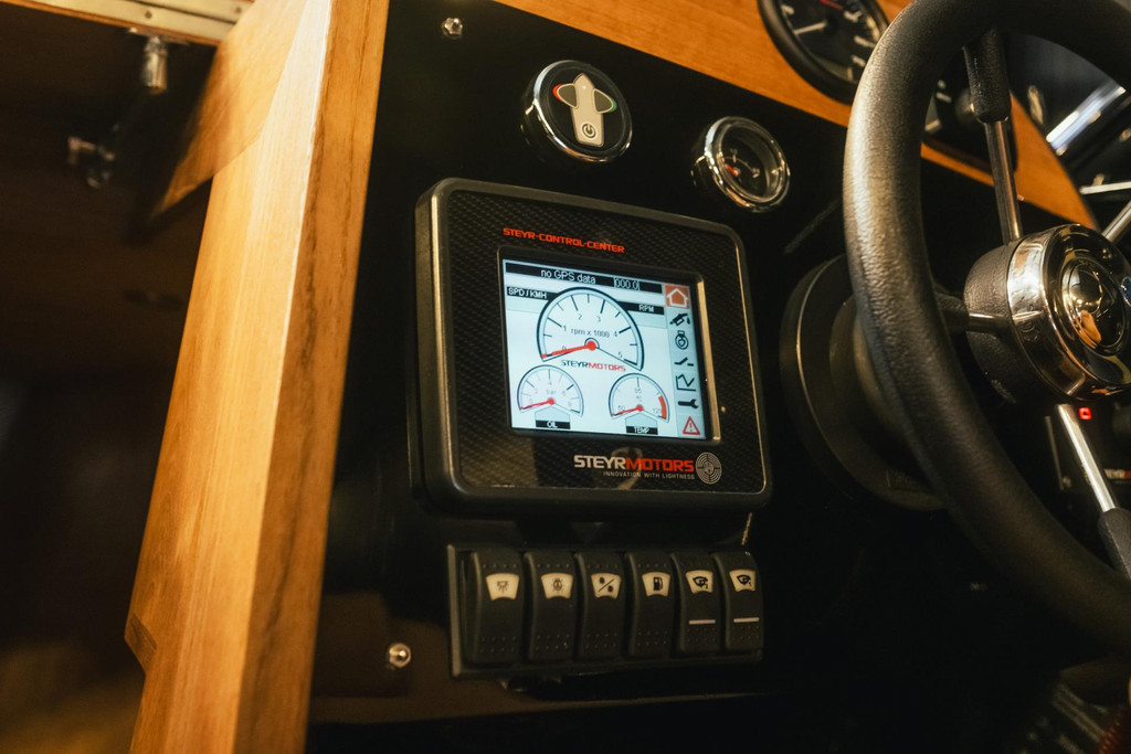Onder de motorkap schuilt een krachtige Steyr 250 pk diesel binnenboordmotor met 6 cilinders, gecombineerd met een jet-aandrijving die acceleratie en wendbaarheid levert waar elke watersporter van droomt. De motor heeft slechts 44 draaiuren en wordt bestuurd via het Steyr Control Center, terwijl een geïntegreerde Zipwake trim-unit zorgt voor optimale stabiliteit en vaarcomfort. Elektrische start, stuurwielbesturing, enkel roer en een elektrische boegschroef maken manoeuvreren eenvoudig en intuïtief.