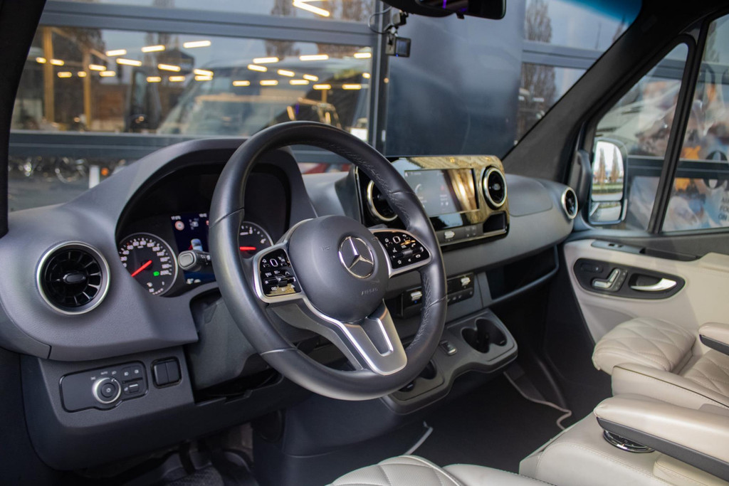 Een belangrijk voordeel: dankzij een totaalgewicht van slechts 3.500 kg mag deze Sprinter gewoon met een B-rijbewijs worden bestuurd. Veel vergelijkbare VIP-uitvoeringen zijn zwaarder, wat beperkingen oplevert in chauffeurkeuze, snelheid en rijcomfort — maar niet hier.