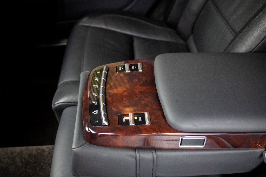 Durch den verlängerten Radstand bietet das Fahrzeug besonders hohen Komfort im Fond. Der Innenraum befindet sich ebenfalls in sehr gutem Zustand und ist ausgestattet mit elektrisch verstellbaren Sitzen mit Memory-Funktion, Sitzheizung und Belüftung, Multikontursitzen vorne und hinten, 4-Zonen-Klimaautomatik, Ambientebeleuchtung und edlen Holzeinlagen.