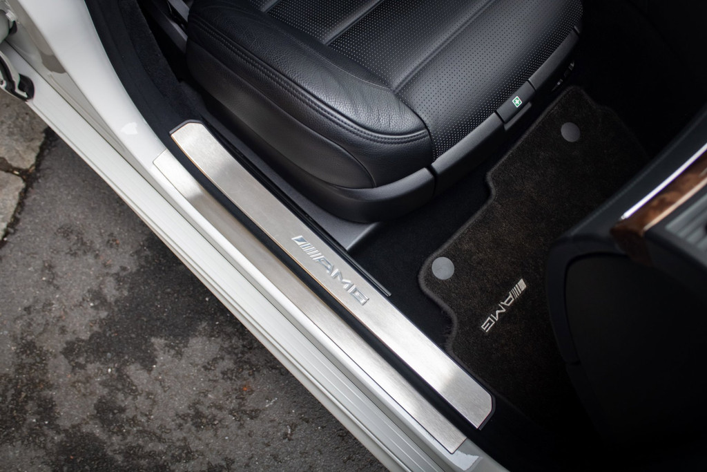 The exterior is in very good condition and still in first paint, contributing to its originality. The original 19-inch AMG wheels show minor signs of use and could benefit from cosmetic refurbishment.