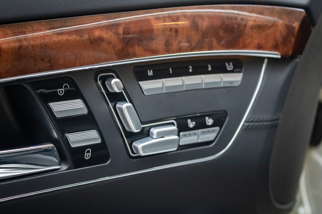 Durch den verlängerten Radstand bietet das Fahrzeug besonders hohen Komfort im Fond. Der Innenraum befindet sich ebenfalls in sehr gutem Zustand und ist ausgestattet mit elektrisch verstellbaren Sitzen mit Memory-Funktion, Sitzheizung und Belüftung, Multikontursitzen vorne und hinten, 4-Zonen-Klimaautomatik, Ambientebeleuchtung und edlen Holzeinlagen.